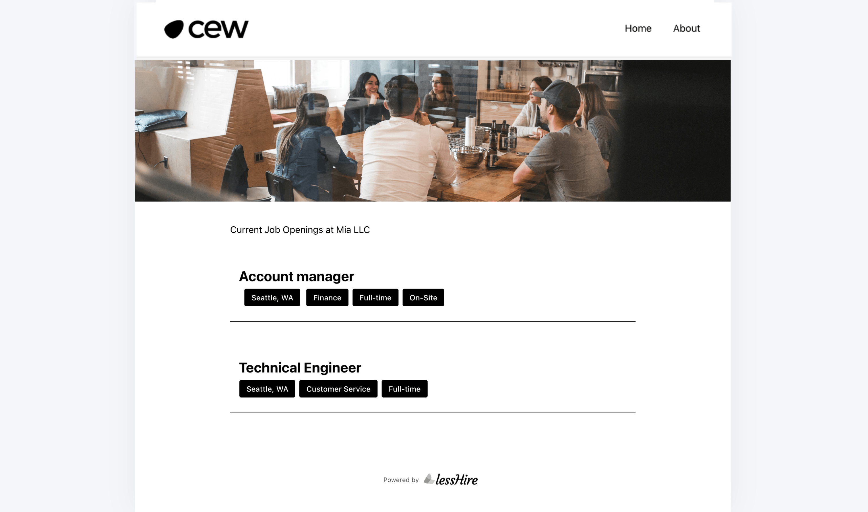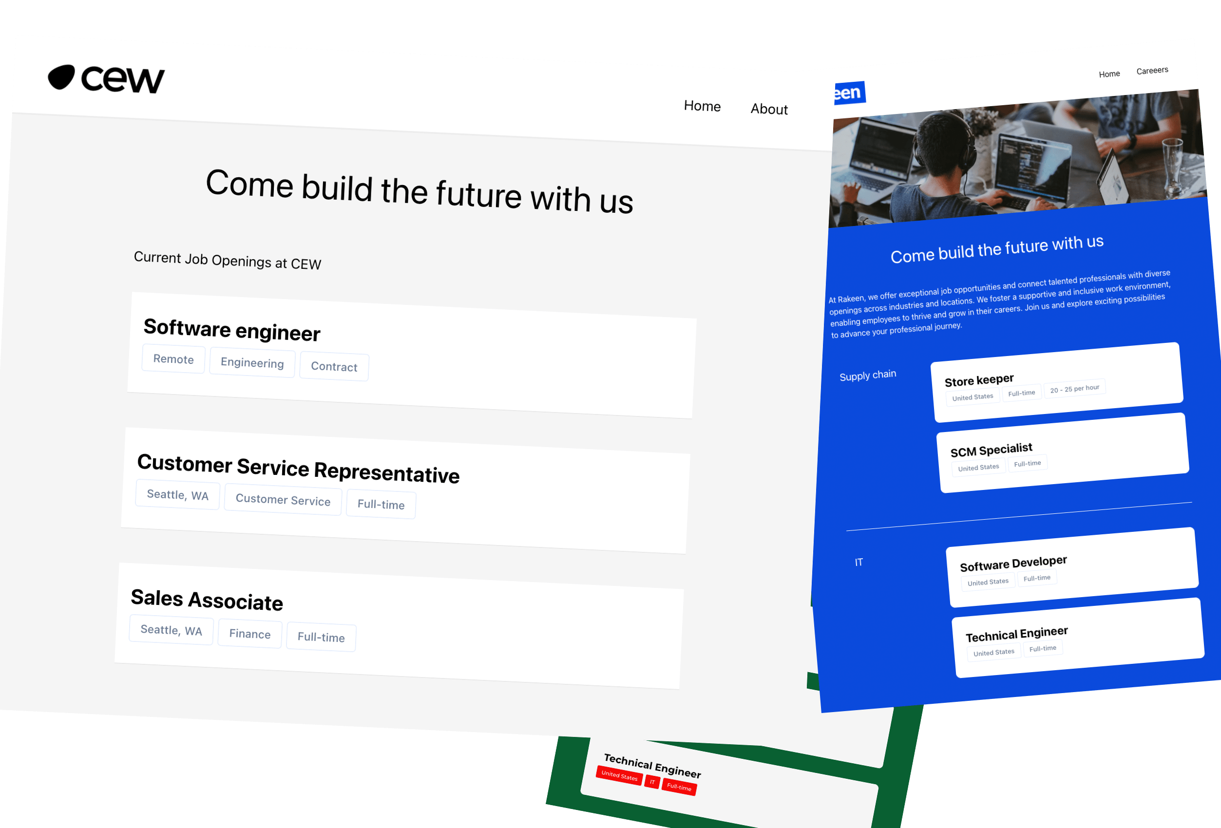 Build your brand's careers site hassle-free and without any coding skills. Our platform is easy to use, allowing you to customize it effortlessly